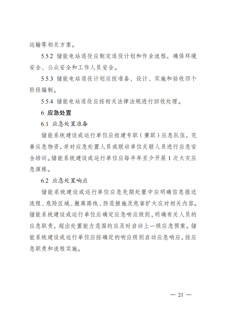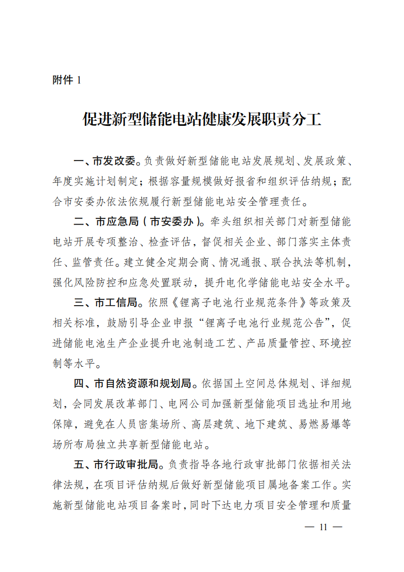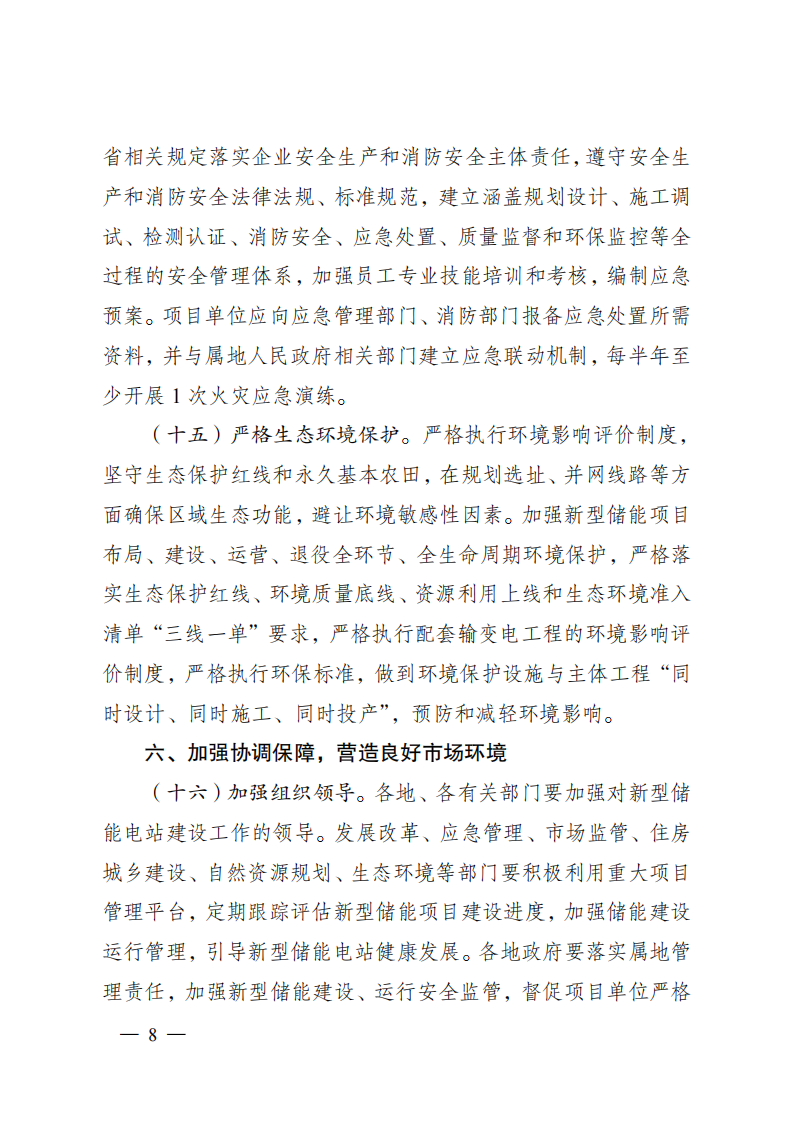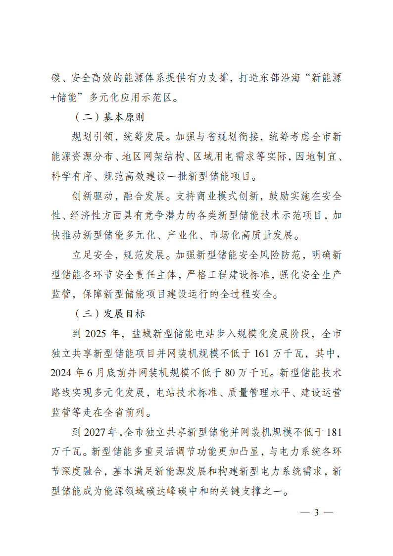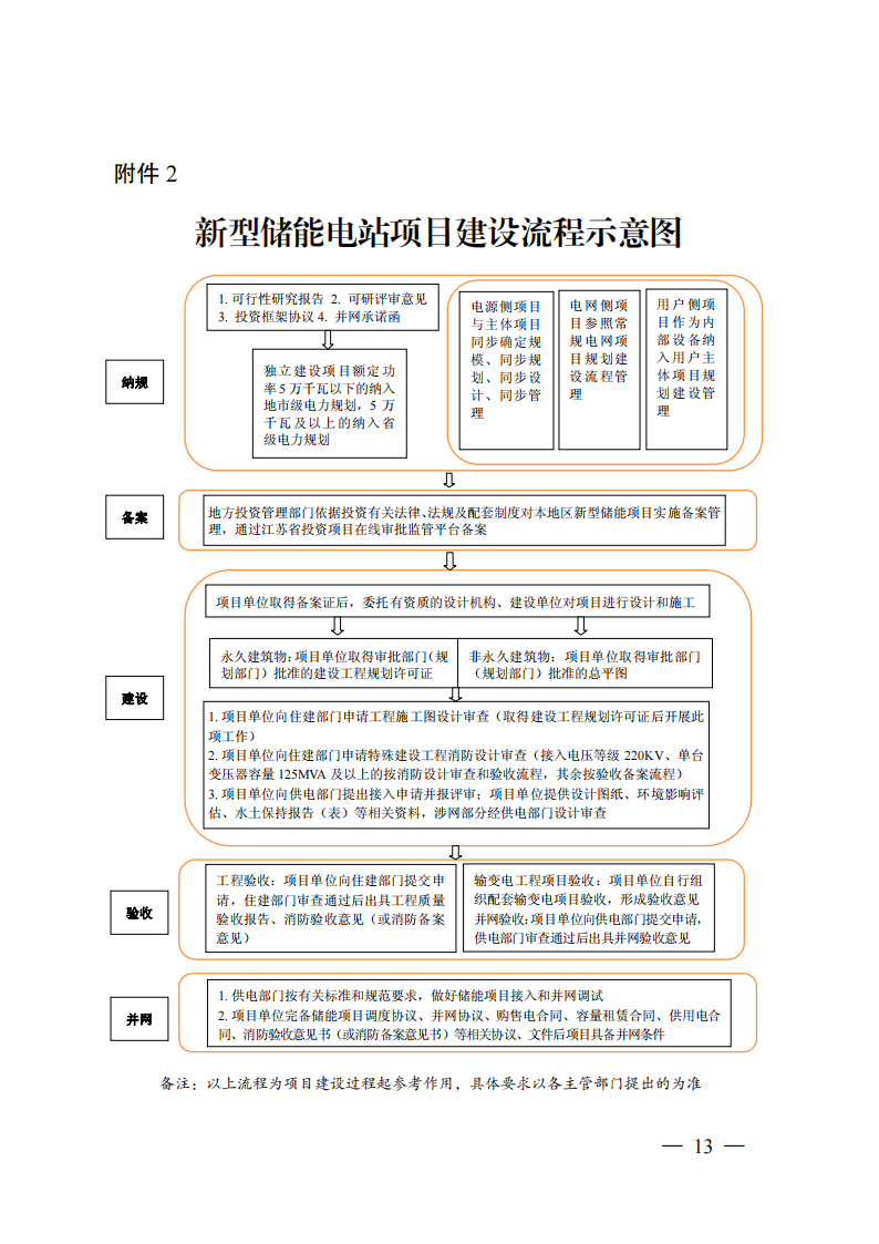 《关于加强新型储能电站建设管理工作的指导意见》政策解读一、出台背景。为促进新型储能电站科学布局、安全发展,加快构建适应大规模高比例新能源发展需求的新型电力系统,扎实推进能源绿色低碳转型,加快建设“绿色低碳发展示范区”,结合盐城实际,制定出台《关于加强新型储能电站建设管理工作的指导意见》(以下简称《指导意见》)。二、主要依据。《国家发展改革委国家能源局关于加快推动新型储能发展的指导意见》(发改能源规〔2021〕1051号)、《国家发展改革委国家能源局关于印发<“十四五”新型储能发展实施方案>的通知》(发改能源发〔2022〕209号)和《省发展改革委关于印发沿海地区新型储能项目发展实施方案(2023-2027)的通知》(苏发改能源发〔2023〕774号)等。三、主要目标。到2025年,盐城新型储能电站步入规模化发展阶段,全市独立共享新型储能项目并网装机规模不低于161万千瓦,其中,2024年6月底前并网装机规模不低于80万千瓦。新型储能技术路线实现多元化发展,电站技术标准、质量管理水平、建设运营监管等走在全省前列。到2027年,全市独立共享新型储能并网装机规模不低于181万千瓦。新型储能多重灵活调节功能更加凸显,与电力系统各环节深度融合,基本满足新能源发展和构建新型电力系统需求,新型储能成为能源领域碳达峰碳中和的关键支撑之一。四、主要内容。《指导意见》坚持了“规划引领、创新驱动、立足安全”原则,从“规划布局、项目准入、项目设计、施工验收、并网调度、运行维护、部门监管、应急处置”等环节,明确各阶段具体要求,通过提高储能电站相关产品及系统质量和健全科学规范的管理体系来提升新型储能电站项目安全性,防范安全隐患。《指导意见》主要分为六个部分。第一部分,总体要求,包含指导思想、基本原则、发展目标等方面。重点提出到2025年,全市新型储能并网装机规模不低于161万千瓦,至2027年不低于181万千瓦;第二部分,加强规划引导,鼓励储能多元发展。包含储能项目科学合理布局、储能电站不同场景应用、储能技术多元融合发展等方面。重点提出独立共享电化学储能电站防火距离不得小于50米;第三部分,完善报批流程,规范项目源头管理。包含纳规流程、项目备案、规范建设等方面。重点提出可研报告评审和项目设计由规定资质的单位承担;额定功率5万千瓦及以上的项目由省能源局评估纳规,5万千瓦以下的由市发改委评估纳规;第四部分,严格技术标准,切实提高本质安全。包含设计管理、产品质量、建设标准等方面。重点提出建立储能产品到货抽检制度;独立共享新型储能项目连续放电时间不低于2小时;不得选用梯次利用动力电池;第五部分,强化运行监管,切实提升安全水平。包含项目运行监督、安全生产管理、生态环境保护等方面。重点提出项目投运前三年每年至少进行一次涉网性检测,三年后每年进行一次整站检测;建立应急联动机制,每半年至少开展1次火灾应急演练;第六部分,加强协调保障,营造良好市场环境。包含组织领导、要素保障、监测评估、行业自律等方面。重点提出加强项目动态监测和评估;引导企业合理投资、有序建设,着力避免新型储能“建而不用”、“建而不调”等问题。《指导意见》还附录了相关部门及各地政府职责分工、新型储能电站项目建设流程示意图、电化学储能电站建设技术标准参考指南。免责声明:文章转载自北极星储能网,仅作转载分享非商业用途,如有侵权请联系作者删除,谢谢!